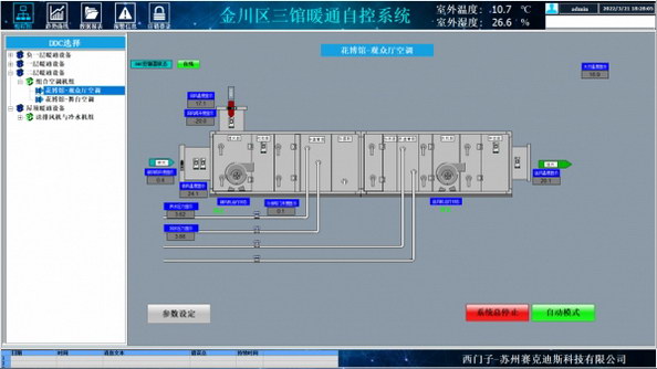 金昌三館暖通空調(diào)項(xiàng)目自控系統(tǒng)是將金川區(qū)圖書(shū)館、花博館、檔案館三處館所內(nèi)所包含的風(fēng)冷熱泵系統(tǒng)、組合式空調(diào)系統(tǒng)、新風(fēng)系統(tǒng)、送排風(fēng)系統(tǒng)和排污系統(tǒng)等納入樓宇自動(dòng)化管理系統(tǒng)進(jìn)行統(tǒng)一監(jiān)視、控制和管理。直觀簡(jiǎn)潔的操作畫(huà)面,經(jīng)濟(jì)的控制器選型和系統(tǒng)搭配,健全的報(bào)警機(jī)制,利用 PID 功能精準(zhǔn)控制調(diào)節(jié)閥,充分體現(xiàn)了系統(tǒng)的簡(jiǎn)單易操作、經(jīng)濟(jì)高效、安全、節(jié)能等特點(diǎn),為場(chǎng)館提供了一個(gè)安全、舒適的生活、學(xué)習(xí)與工作環(huán)境空間。